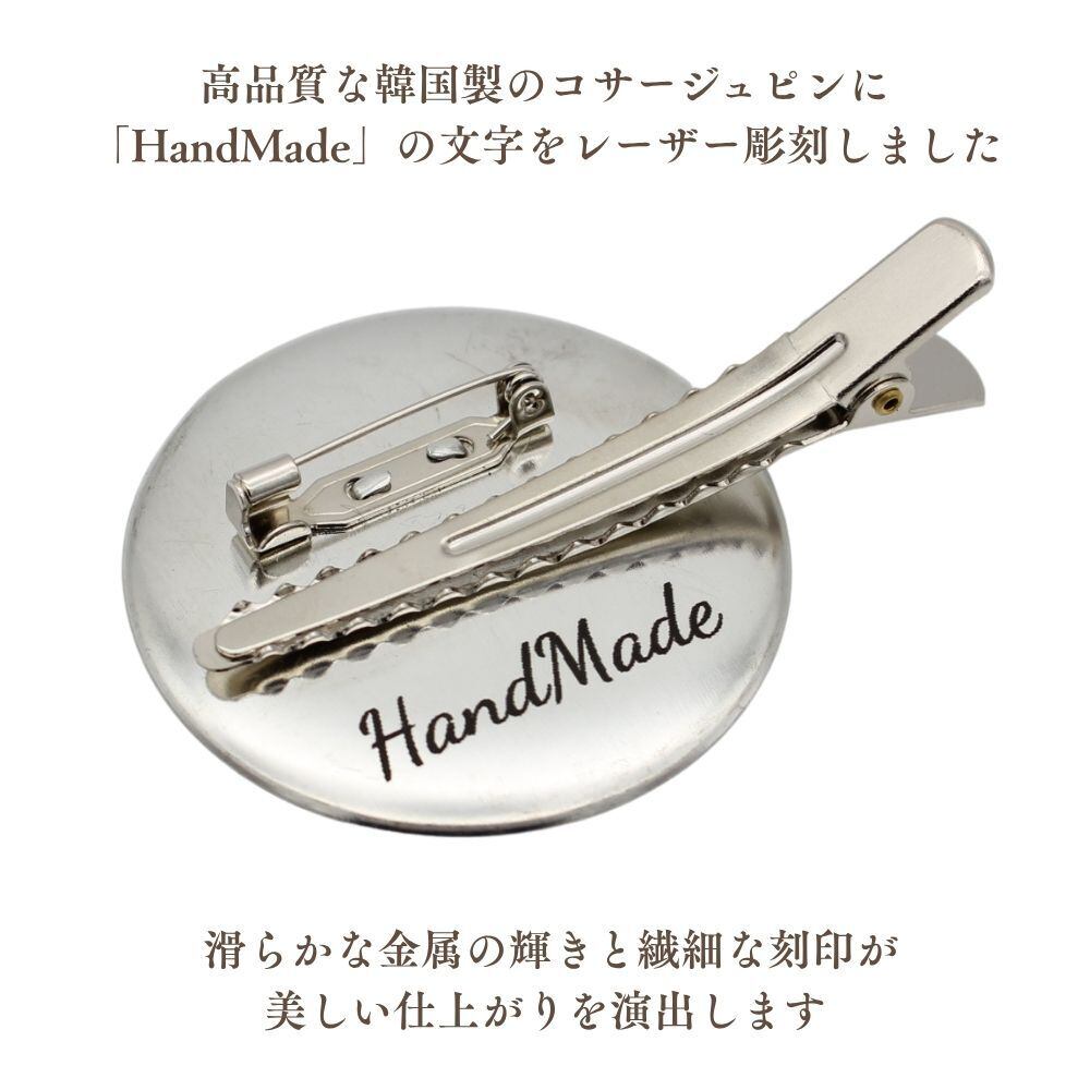 高品質な韓国製のコサージュピンに「HandMade」の文字をレーザー彫刻した当店オリジナル商品です
