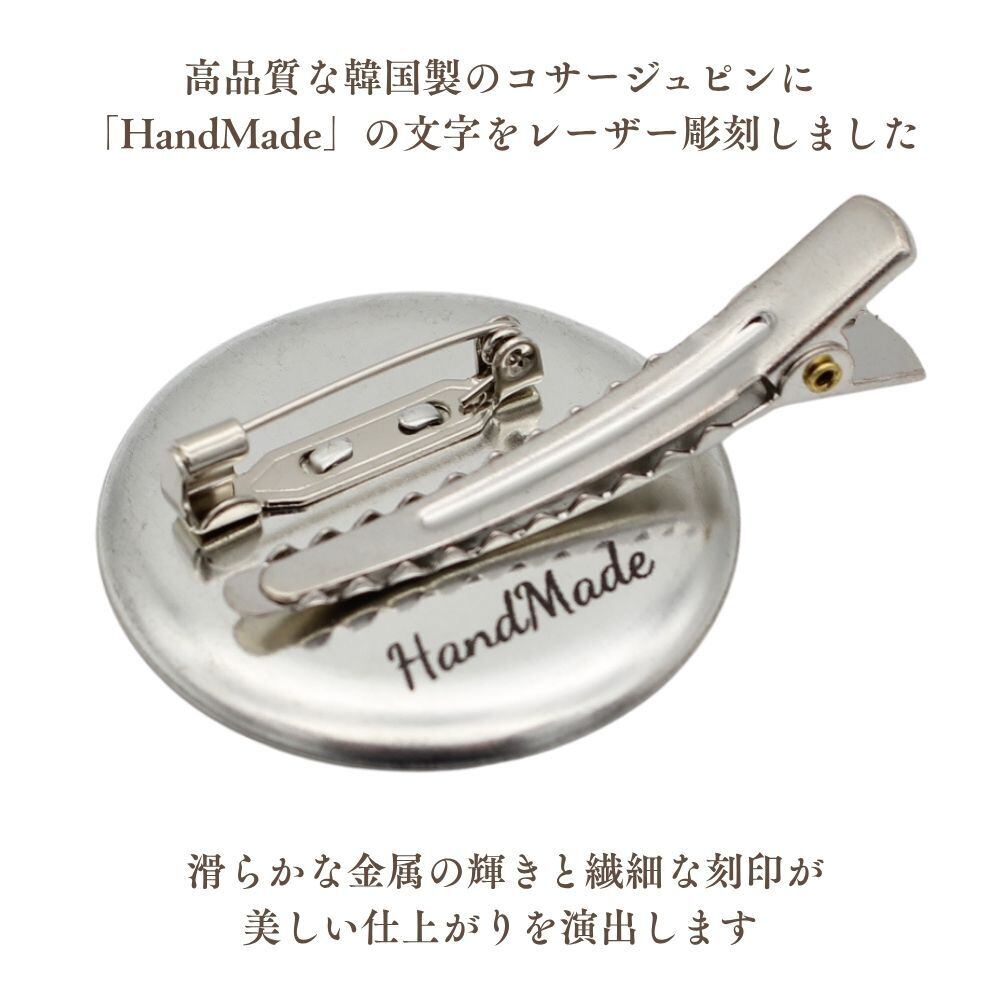 高品質な韓国製のコサージュピンに「HandMade」の文字をレーザー彫刻した当店オリジナル商品です