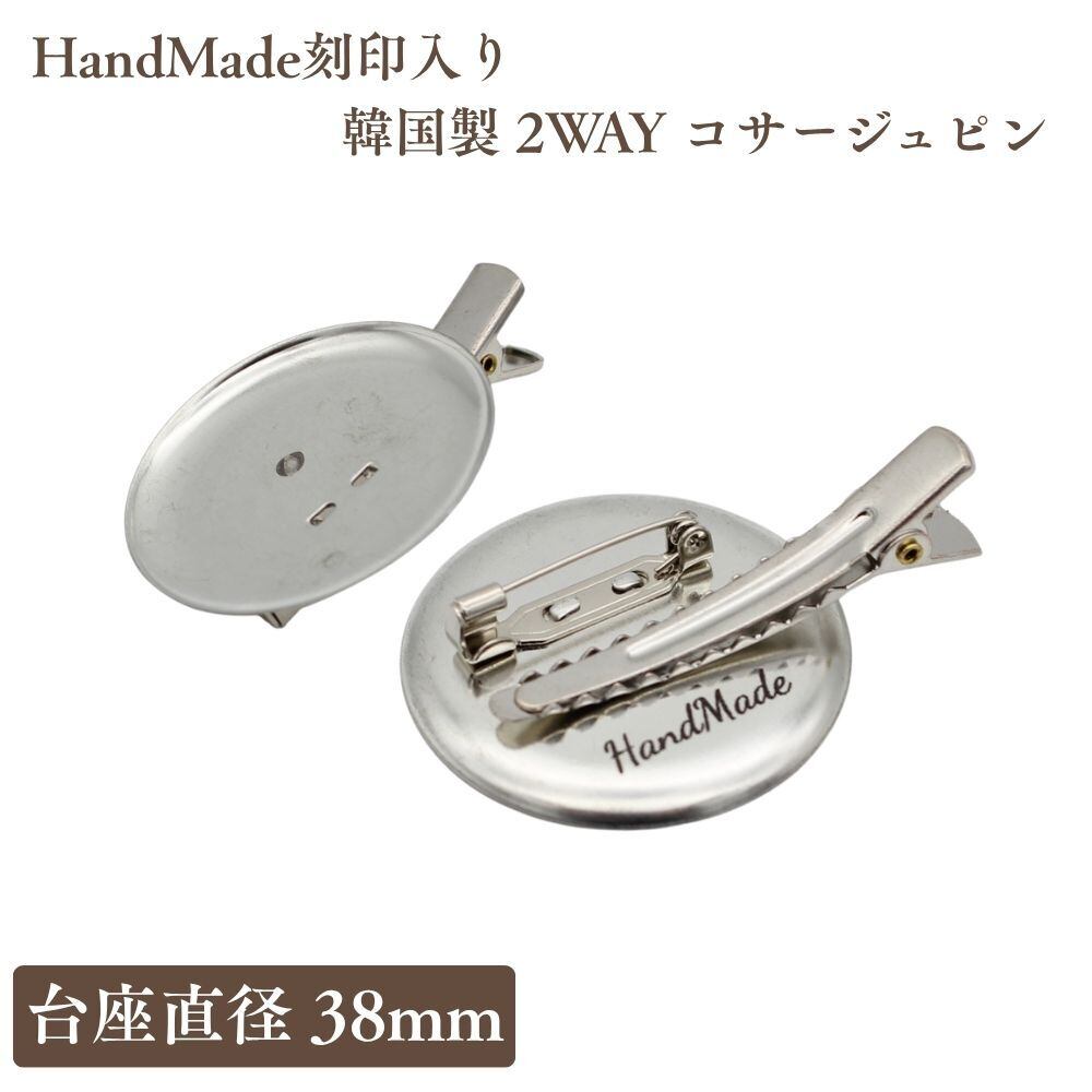 【新発売】【30個パック】HandMade刻印入り 韓国製 2WAY コサージュピン 台座直径38mm sgk-7-egv-30p(ブローチピン ヘアクリップ ブローチ 台座付 台付 円盤 大きい 小さい ミニ シルバー アクセサリー handmade 彫刻 刻印)