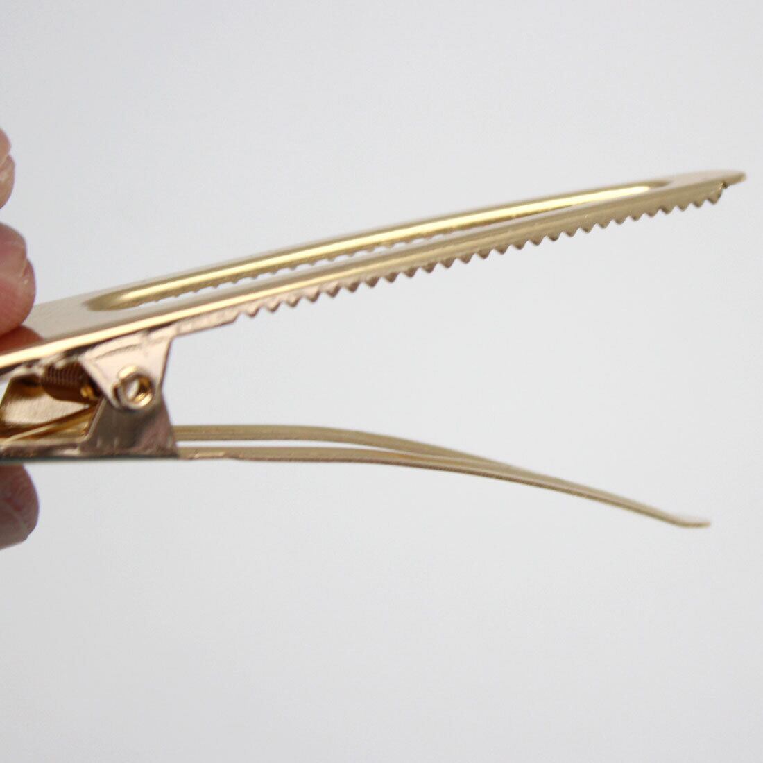 【2個パック】三角 穴あき ヘアクリップ [ピンクゴールド 色、長さ 80mm] sgy-1790-2p(クリップ ヘアアクセサリー パーツ 手芸 つまみ細工 材料 素材 やっとこピン ヤットコピン 土台 大きい 三角 さんかく 穴あき 穴開き ゴールド 金色)