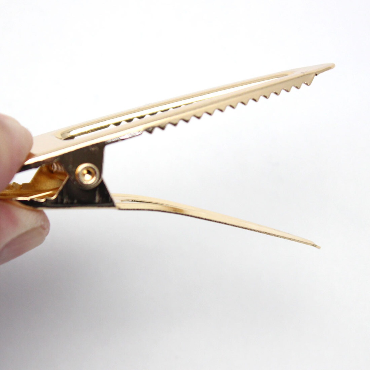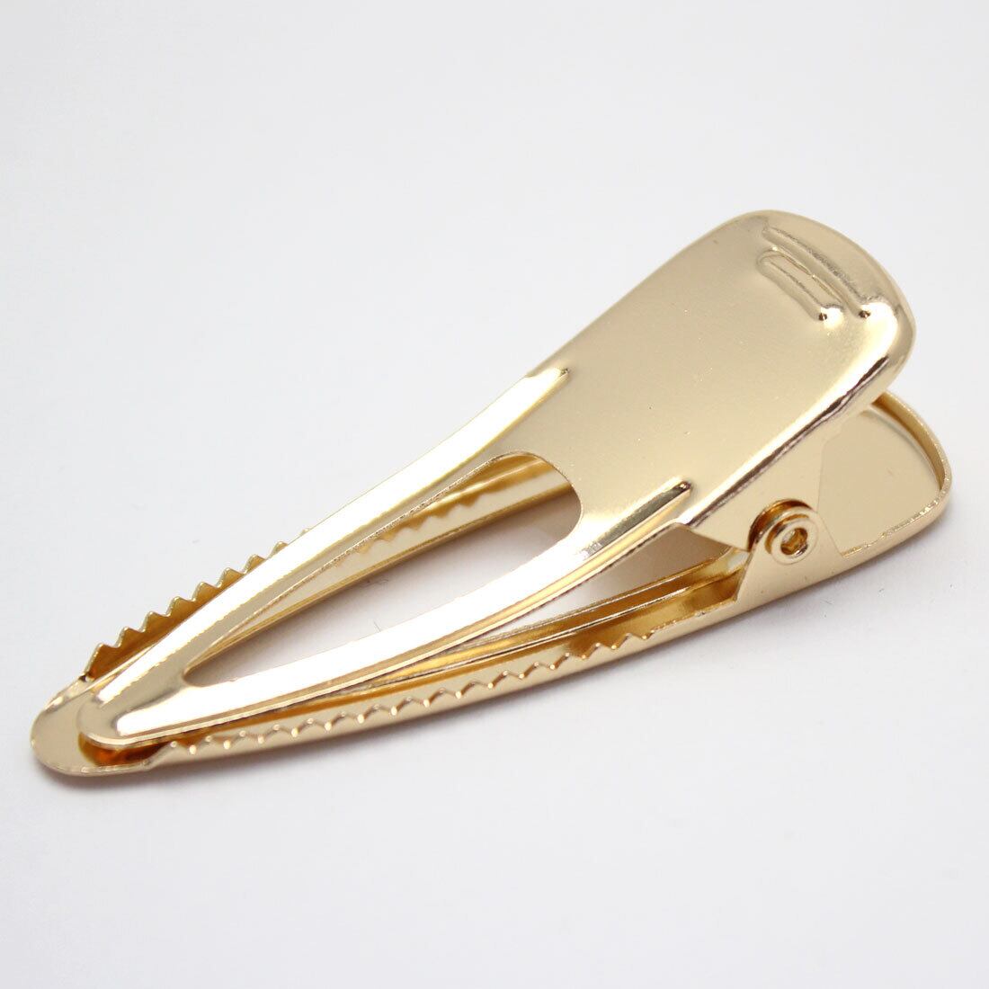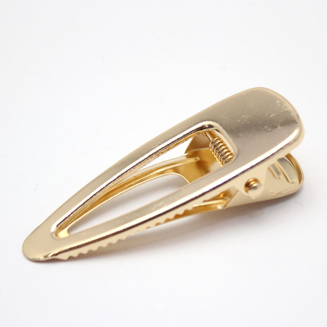 【20個パック】三角 穴あき ヘアクリップ [シャンパンゴールド 色、長さ 60mm] sgy-1794-20p(クリップ ヘアアクセサリー パーツ 手芸 つまみ細工 材料 素材 やっとこピン ヤットコピン 土台 大きい 三角 さんかく 穴あき 穴開き シャンパンゴールド ゴールド 金色)