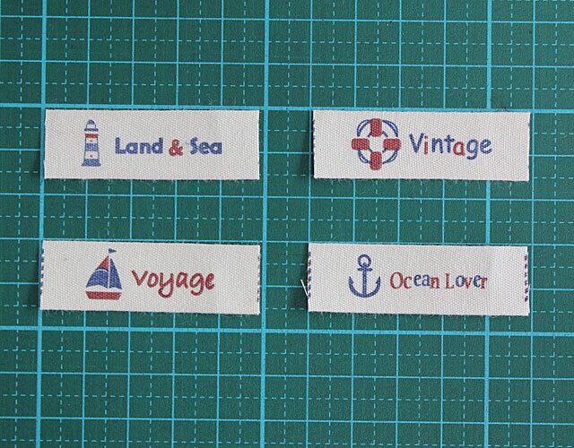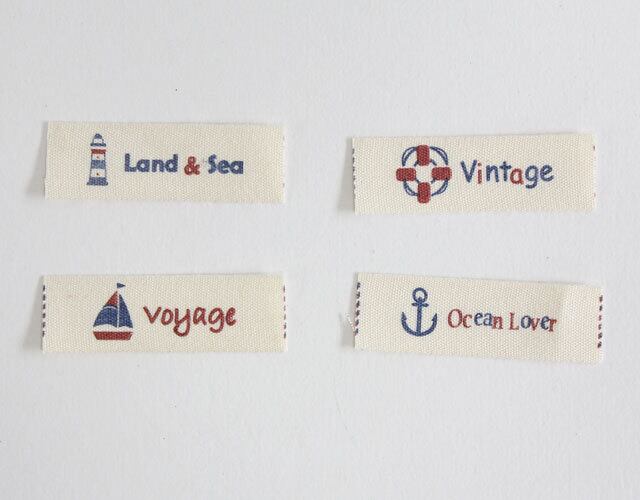 【約2ヤード(182cm)】タグ約38個 コットン タグ テープ [1.5cm幅] sgy-988-a-2y(手芸用パーツ ワンポイント 布タグ タグテープ 手芸材料 パーツ 副資材 ハンドメイド handmade マリーン 海 船 いかり 灯台 ワンポイント 布タグ)