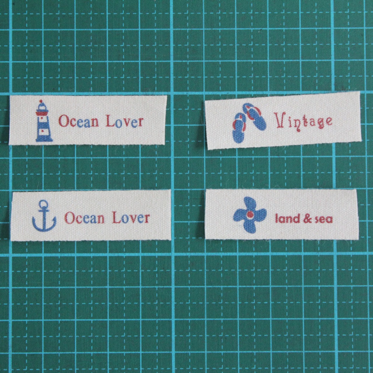 【約10ヤード(9.1M)】タグ約190個 コットン タグ テープ [1.5cm幅] sgy-988-c-10y(手芸用パーツ ワンポイント 布タグ タグテープ 手芸材料 パーツ 副資材 ハンドメイド handmade オーシャン 海 マリーン サンダル いかり プロペラ ナチュラル)