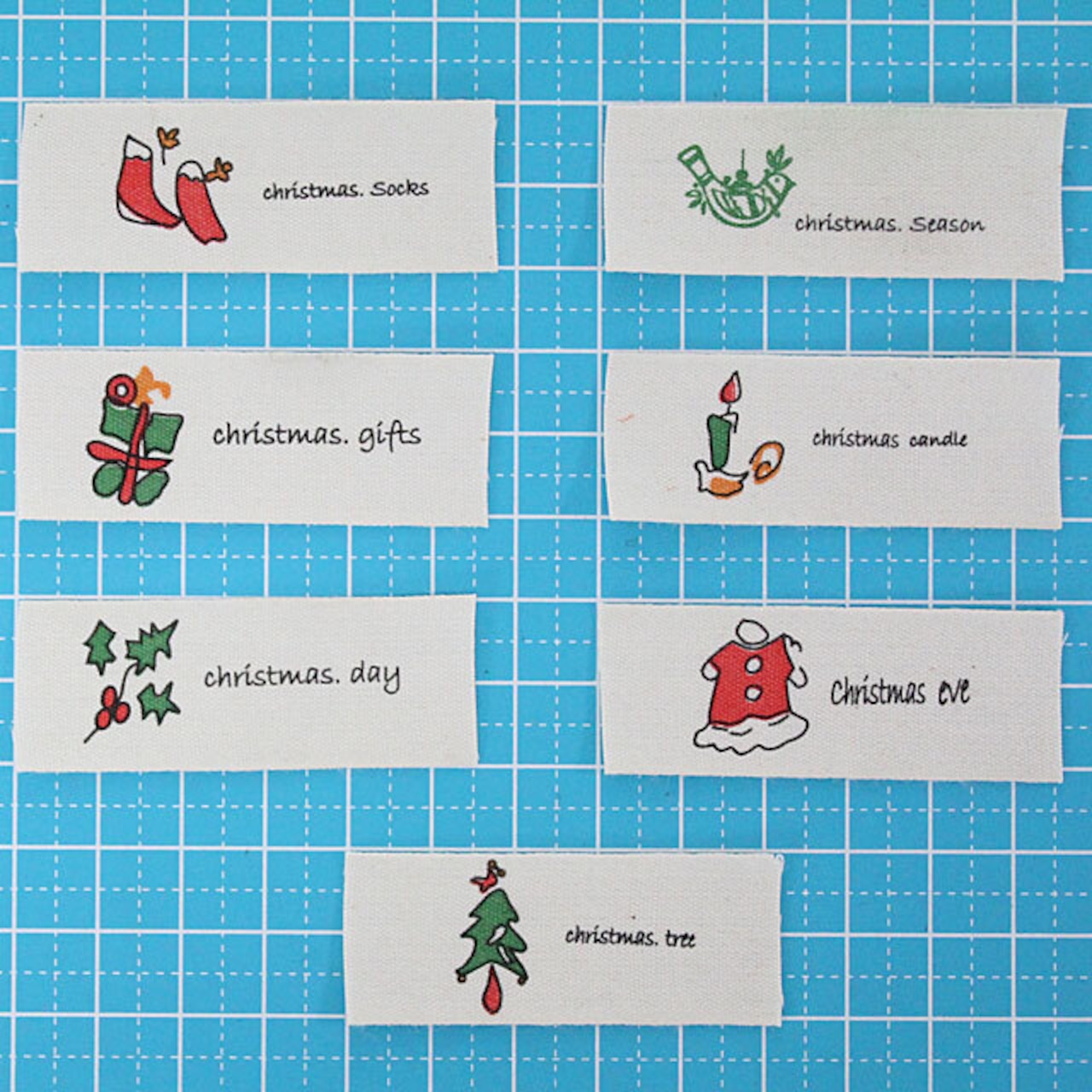 【約1ヤード】タグ約17個 コットン タグ テープ [2cm幅] sgy-424-a(手芸用パーツ ワンポイント 布タグ 手芸材料 パーツ ハンドメイド タグテープ 副資材 クリスマス ブーツ バード プレゼント ローソク)