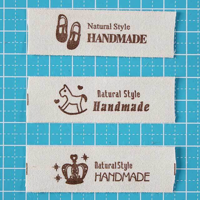 【約2ヤード(182cm)】タグ約28個 コットン タグ テープ [2cm幅] sgy-474-c-2y(手芸用パーツ ワンポイント 布タグ タグテープ 手芸材料 パーツ ハンドメイド 副資材 ホース馬 クラウン 王冠 シューズ くつ handmade)