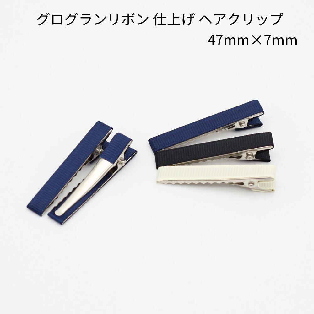 【同色20個パック】グログラン リボン 仕上げ ヘアクリップ[ベース金具:銀色] [リボン:ネイビー/ブラック/オフホワイト] [47mm×7mm] sgy-357-gr-20p(クリップ やっとこピン ヤットコピン ヘアピン パーツ 材料 素材 資材 副資材 つまみ細工 シルバー 黒 青 白)