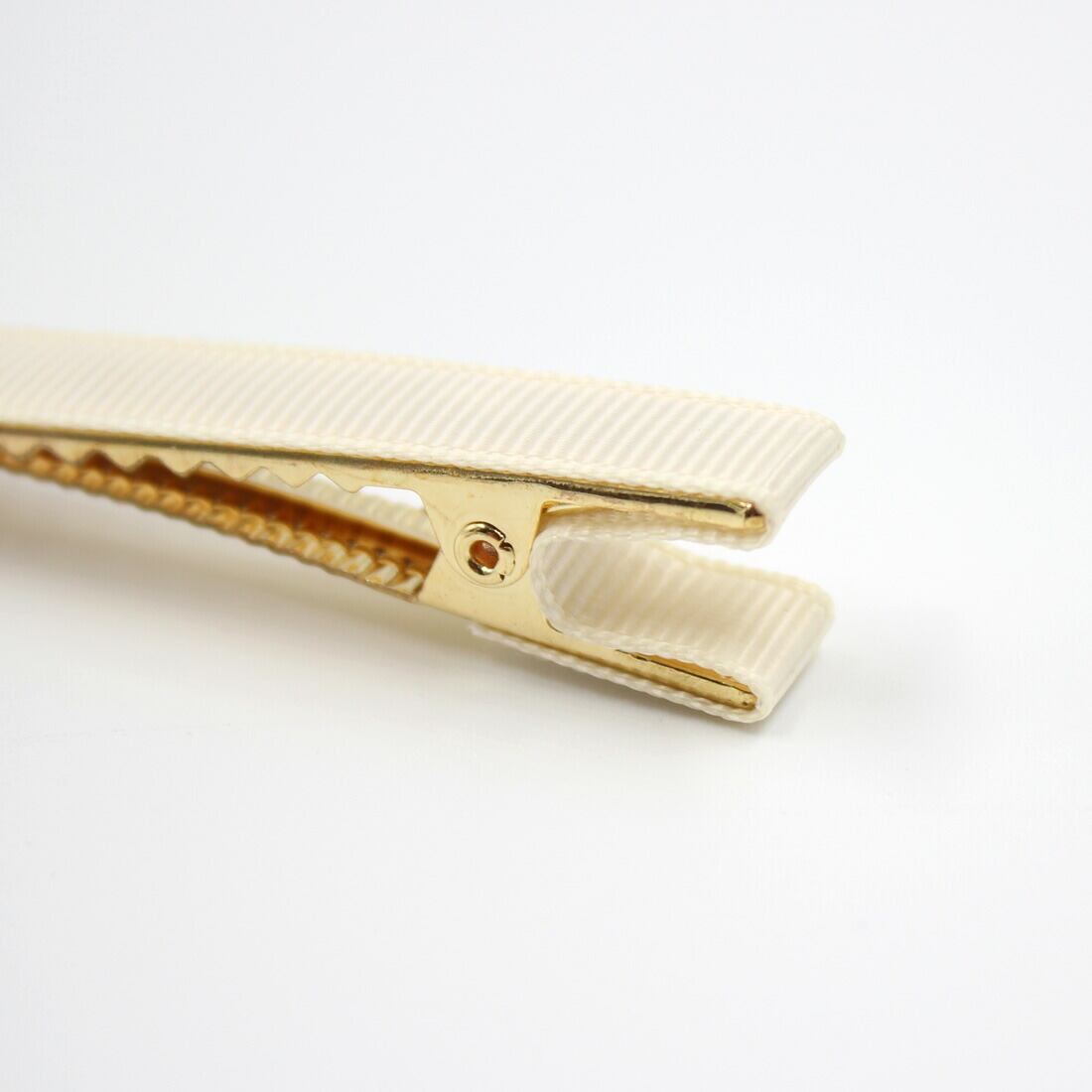 【20個パック】グログランリボン 仕上げ ヘアクリップ[ベース金具:金色、リボン:オフホワイト 色][81mm×10mm] sgy-1104-gr-20p(クリップ やっとこピン ヤットコピン ヘアピン パーツ 材料 素材 資材 副資材 つまみ細工 ゴールド ゴールド色)