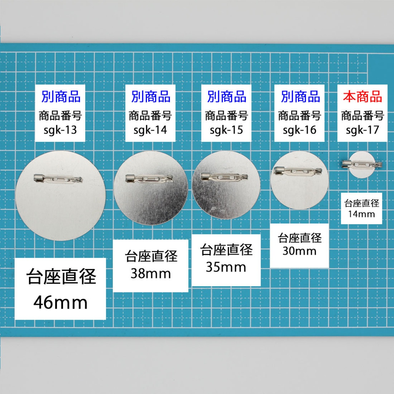 【10個パック】【台座直径 14mm】【韓国製】台付 コサージュピン 平台座 平皿 sgk-17-10p(安全ガード 付きピン ブローチピン 1.4cm 小さい 小サイズ ミニ korea 韓国 手芸 ヘアアクセサリー パーツ ハンドメイド 材料 資材 副資材 つまみ細工 丸 円盤 台座)