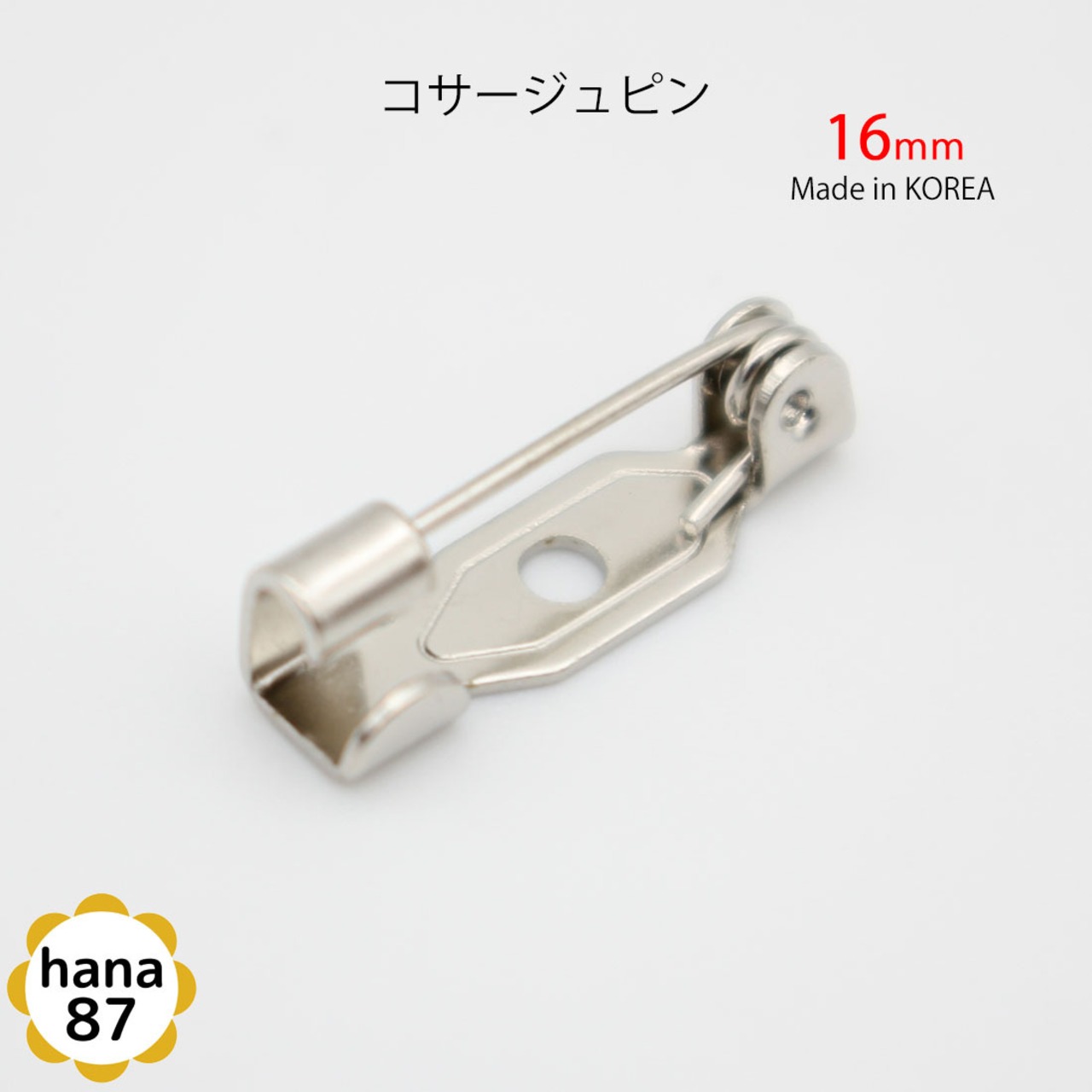 【30個パック】コサージュピン 16mm【韓国製】sgk-21-30p(ブローチピン 1.6cm korea 韓国 小さい 小さめ ミニ 手芸 ヘアアクセサリー パーツ ハンドメイド 材料 資材 副資材 つまみ細工 金具 造花ピン)