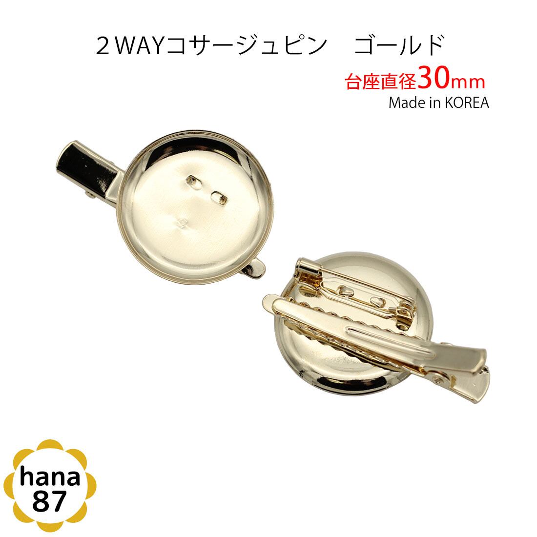 【10個パック】【韓国製】sgk-35-10p【台座直径 30mm / ゴールド 色】 ブローチピン & ヘアクリップ 2WAY コサージュピン ( コサージュ ブローチ 金色 gold 安全ガード 3cm 大きい korea 韓国 手芸 アクセサリー パーツ ハンドメイド 材料 資材 つまみ細工 )
