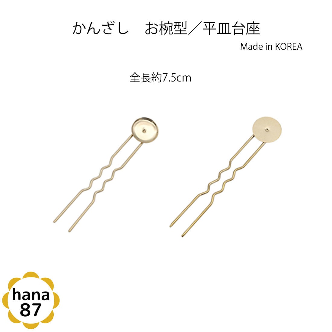 【4個パック】【韓国製】sgk-41-ab-4p かんざし パーツ 台座付 [ ゴールド 色 全長:7.5cm] [台座:お椀型 / 平皿](簪 カンザシ 髪飾り ヘアピン hairpin Uピン 台座 台 土台 金色 gold 手芸 アクセサリー パーツ つまみ細工 ハンドメイド)
