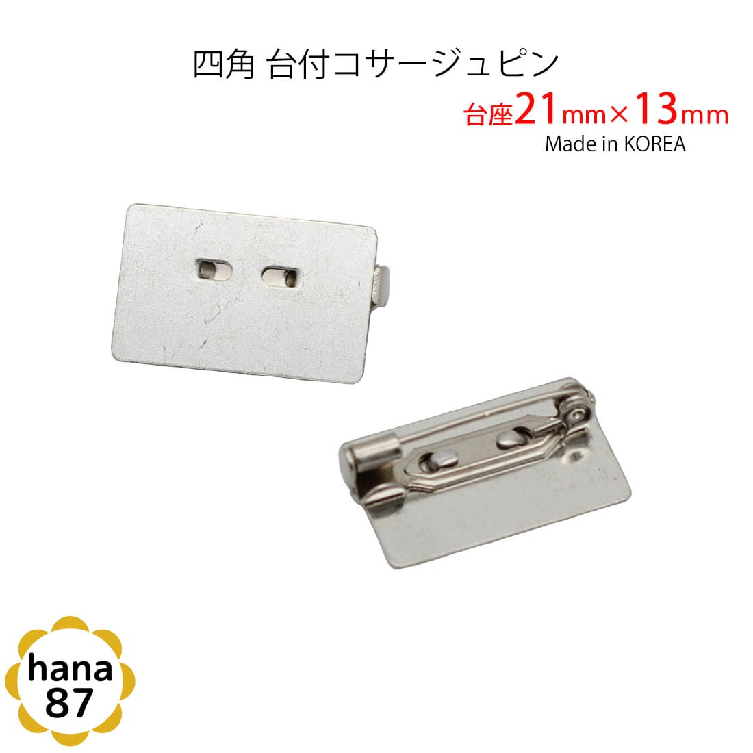 【4個パック】 【韓国製】sgk-49-4p 四角 台付 コサージュピン 銀色【台座 横約21mm × 縦約13mm】(安全ガード ピン ブローチピン 韓国 ヘアアクセサリー パーツ ハンドメイド 材料 資材 副資材 つまみ細工 角型 板 台座付き 小さい 小さめ シルバー )