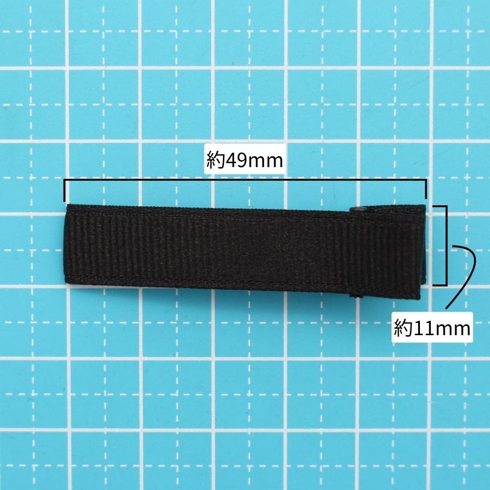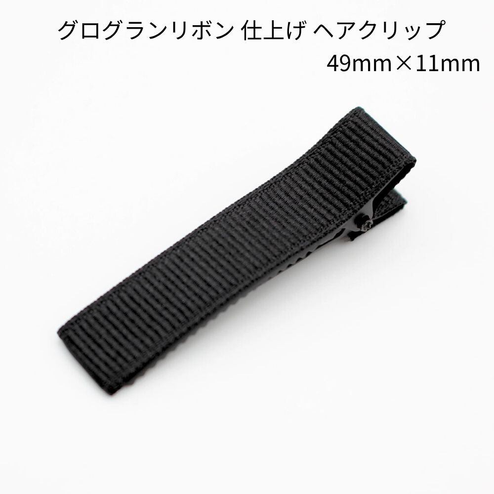 【20個パック】グログラン リボン 仕上げ 曲面 ヘアクリップ[ベース金具:黒色] [リボン:黒色] [49mm×11mm] sgy-1418-gr-20p(クリップ やっとこピン ヤットコピン ヘアピン パーツ 手芸 材料 素材 資材 副資材 つまみ細工 ブラック 黒 小さめ 小さい 5cm)