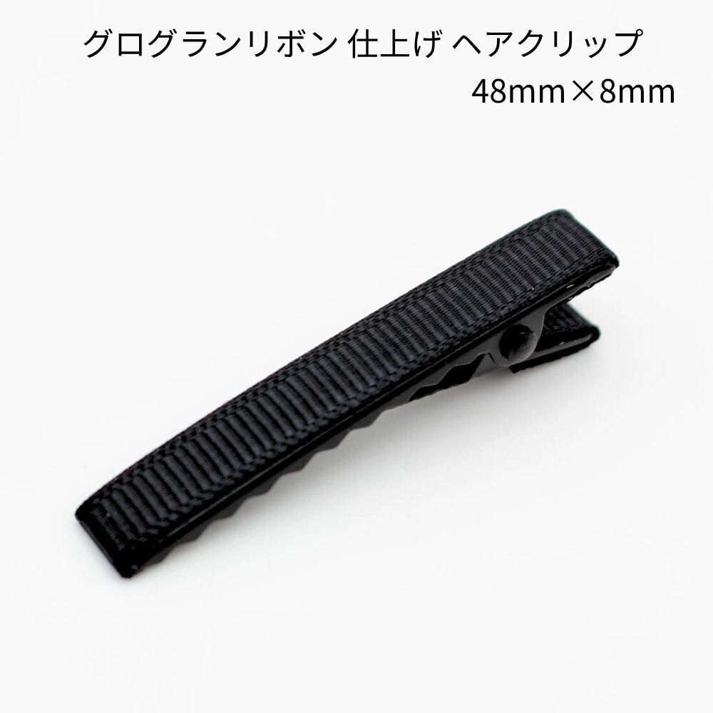 【20個パック】グログラン リボン 仕上げ ヘアクリップ[ベース金具:黒色] [リボン:黒色] [48mm×8mm] sgy-1420-gr-20p(クリップ やっとこピン ヤットコピン ヘアピン パーツ 手芸 材料 素材 資材 副資材 つまみ細工 ブラック 黒 細め 小さめ 小さい)