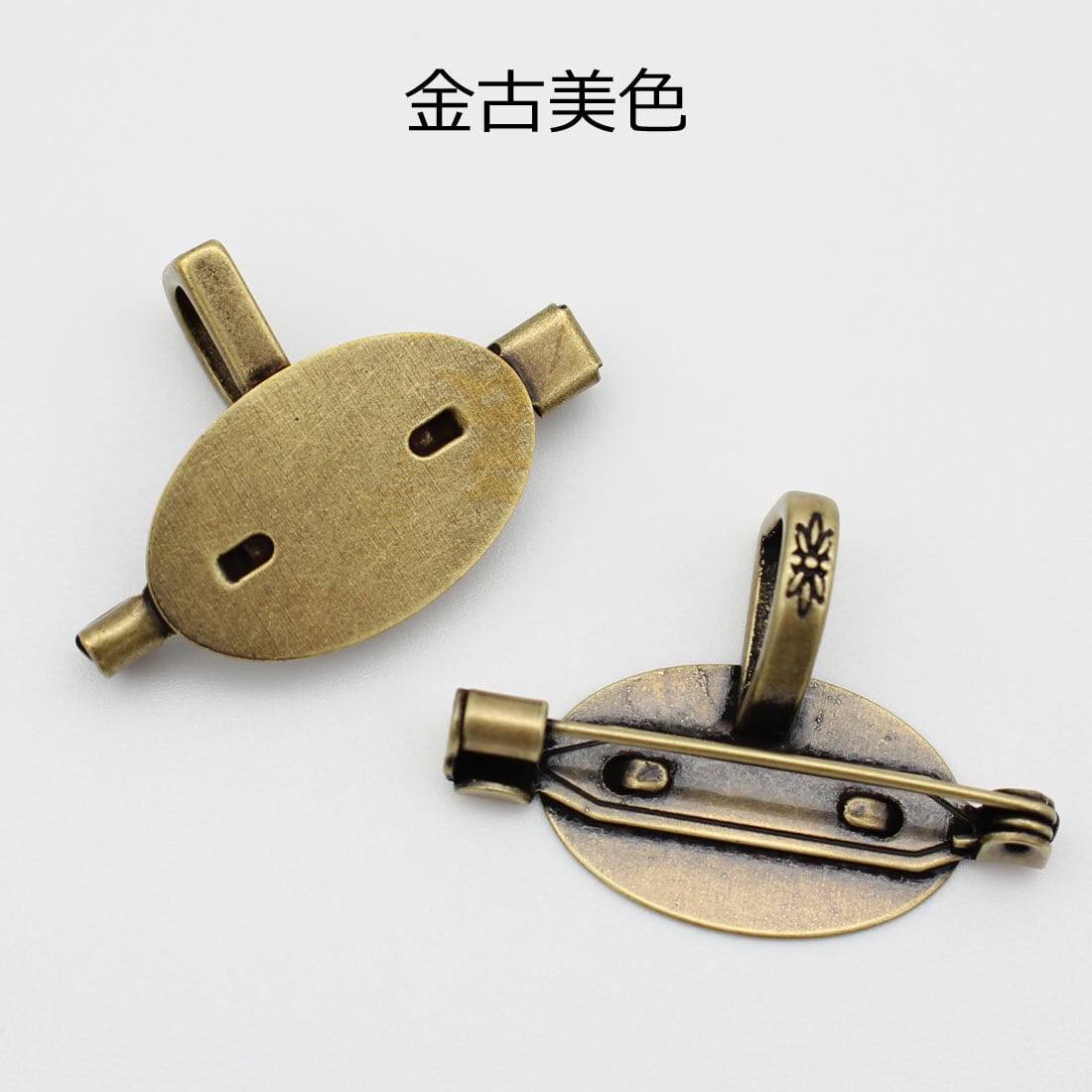 【同色2個パック】sgk-2-2p ブローチピン & ペンダントトップ 2WAY 台座【韓国製】【金色 / 金古美色 の2種類】【横31mm×縦22.3mm】 (安全ガード 付きピン ブローチピン ペンダントヘッド 横長 korea 韓国 ヘアアクセサリー パーツ ゴールド アンティークゴールド)