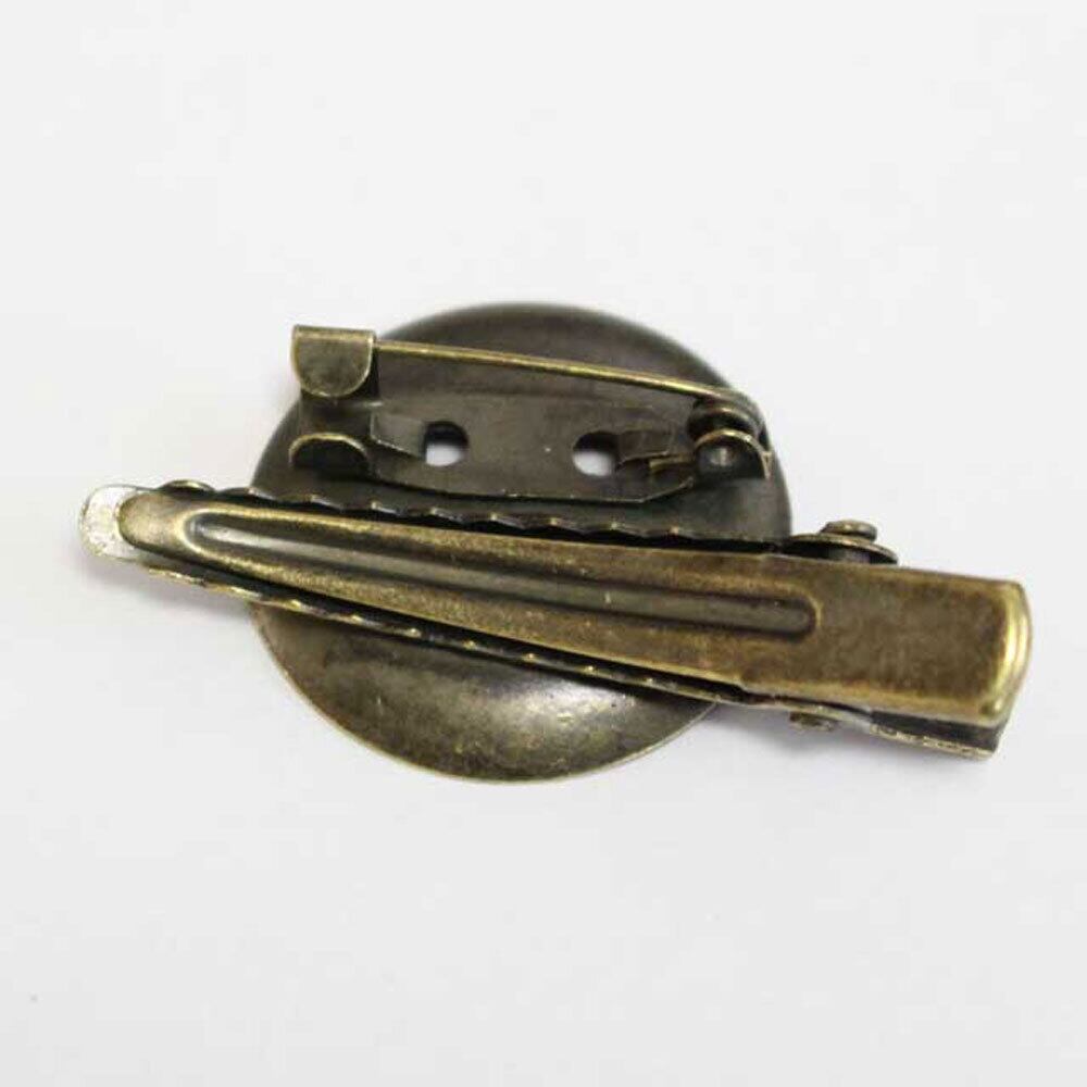 【4個パック】金古美色 ブローチピン&ヘアクリップ 2WAY コサージュピン [台座直径 23mm] sgy-1170-4p(ブローチ台 ブローチピン 手芸 ヘアアクセサリー パーツ つまみ細工 ハンドメイド 材料 素材 金古美 アンティークゴールド)