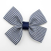 【4個パック】リボンモチーフ【チェック柄 ホワイト & ダークブルー】【7.5cm×5.5cm×1.0cm】sgy-1624c-4p(リボン モチーフ チエック ギンガム 格子 白 ホワイト 青 ブルー ギフト 手芸 パーツ ハンドメイド 材料 素材 リボン りぼん 大きい ビッグ ribbon)