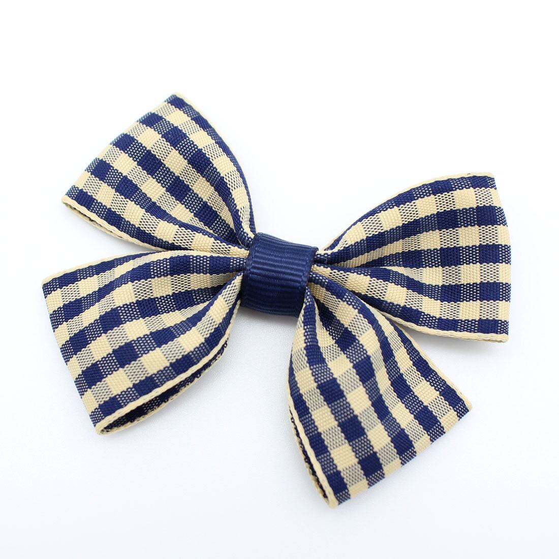 【4個パック】リボンモチーフ【チェック柄 ブルー & アイボリー】【7.5cm×5.5cm×1.0cm】sgy-1624d-4p(リボン モチーフ チエック ギンガム 格子 青 オフホワイト ギフト 手芸 パーツ ハンドメイド 材料 素材 リボン りぼん 大きい ビッグ ribbon)