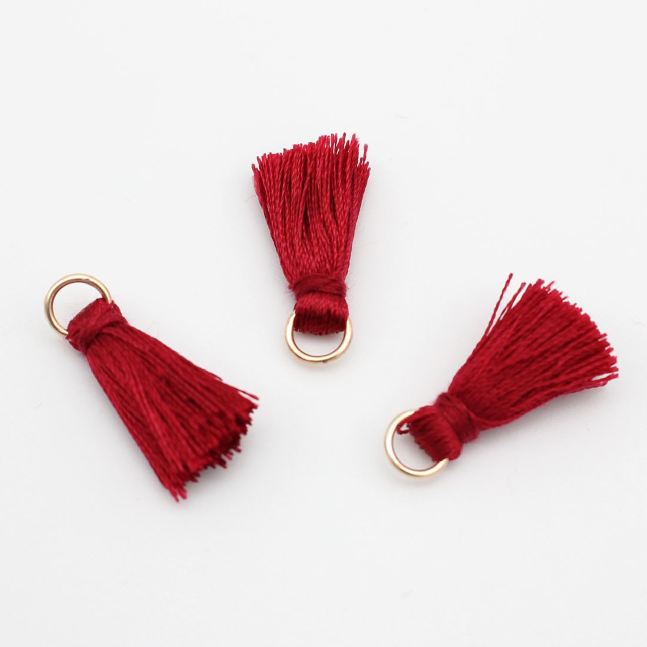 【6個パック】タッセルチャーム [カン付き]【レッド 色】【全長 2.5cm】sgy-1660b-6p(赤色 赤 タッセル フリンジ 糸 房飾り アクセサリー ピアス イヤリング パーツ 材料 ハンドメイド チャーム 丸カン マルカン 金色 ゴールド)