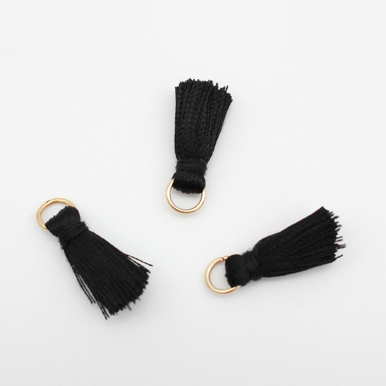 【6個パック】タッセルチャーム [カン付き]【ブラック 色】【全長 2.5cm】sgy-1660f-6p(黒色 黒 タッセル フリンジ 糸 房飾り アクセサリー ピアス イヤリング パーツ 材料 ハンドメイド チャーム 丸カン マルカン 金色 ゴールド)