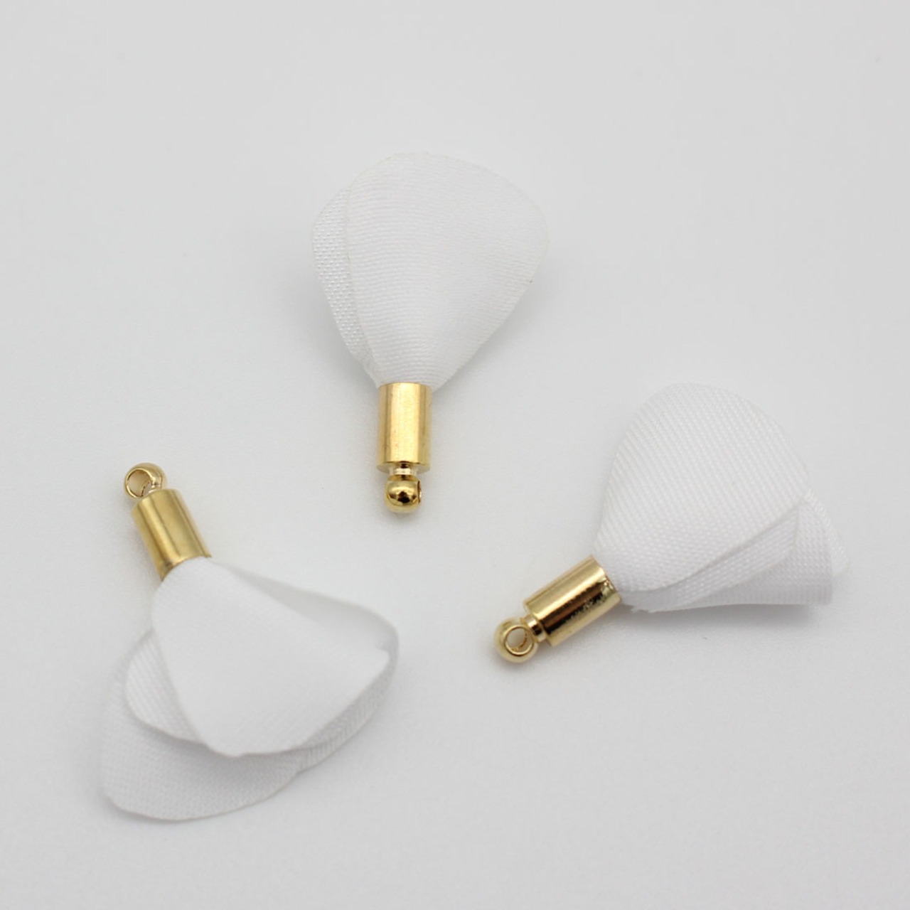 【6個パック】フラワータッセル【ホワイト 色】【長さ 2.2cm】【カツラ色:金色】sgy-1662k-6p(白色 白 ホワイト フラワー 花 花びら タッセル パール アクセサリー ピアス イヤリング パーツ 材料 ハンドメイド チャーム)