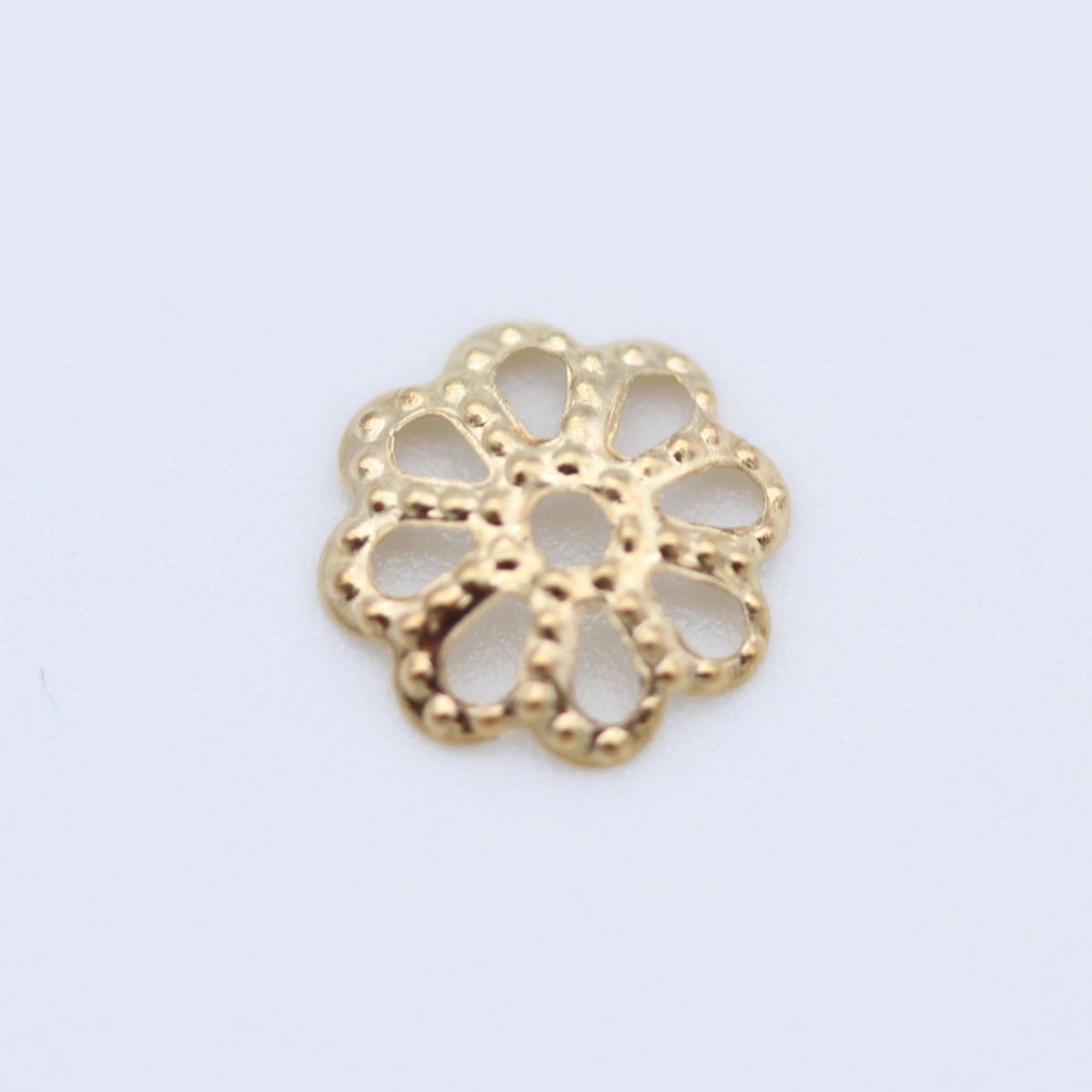【100個パック】アクセサリー用 座金【直径7mm, シャンパンゴールド色】sgy-1685-100p(手芸用パーツ アクセサリー パーツ 手芸 手芸材料 花座 菊座金 ビーズ ネックレス ブレスレット リング ゴールド 金色)