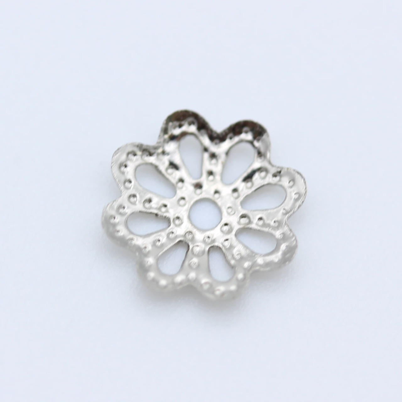 【100個パック】アクセサリー用 座金【直径9mm, シルバー色】sgy-1686-100p(手芸用パーツ アクセサリー パーツ 手芸 手芸材料 花座 菊座金 ビーズ ネックレス ブレスレット リング シルバー 銀色)