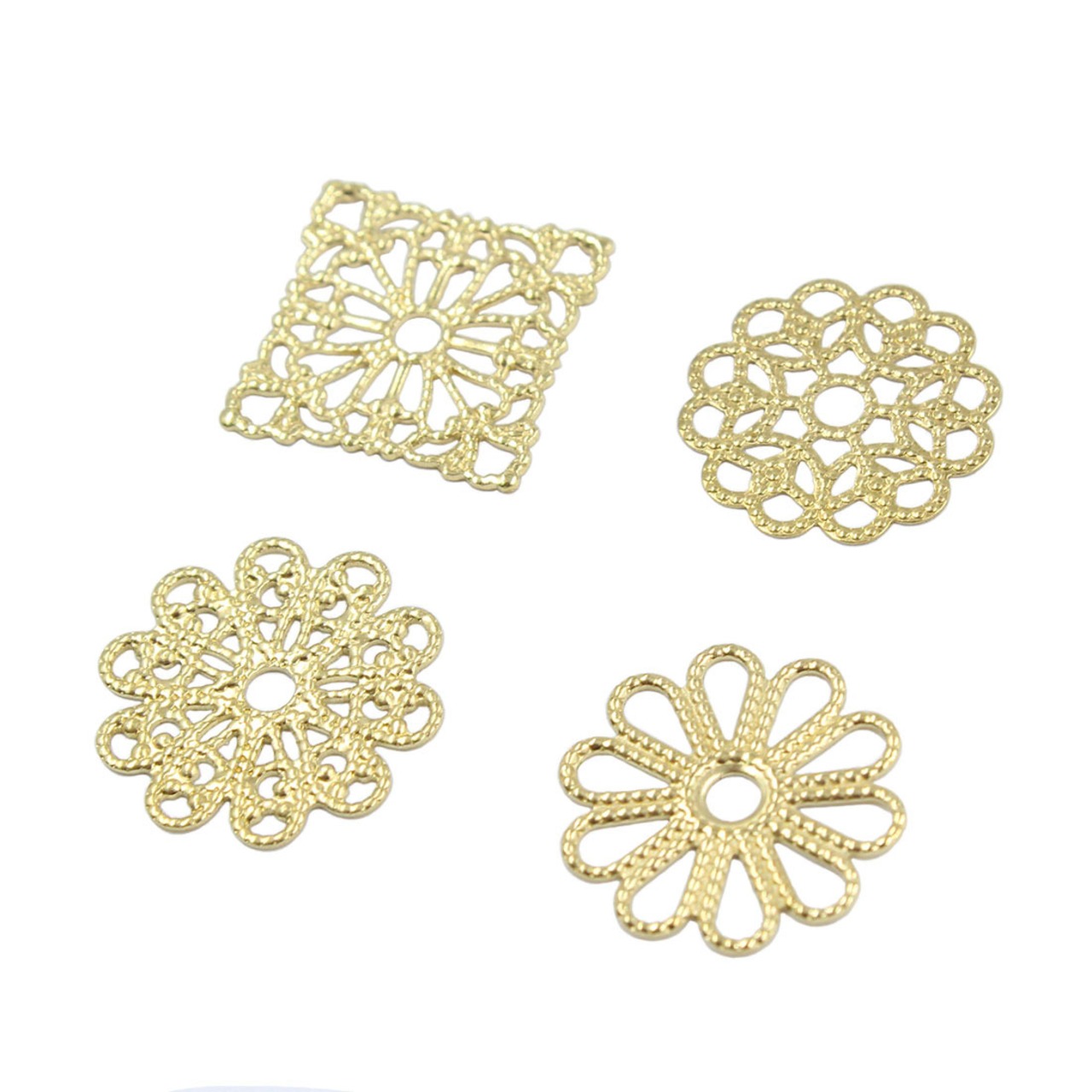 【20個パック】透かしパーツ【全4種類】【ゴールド 色】sgy-1828-20p(金色 金 チャーム セッティング 土台 手芸 材料 パーツ ハンドメイド 金具 ネックレス キーホルダー ストラップ すかし 花 花柄)