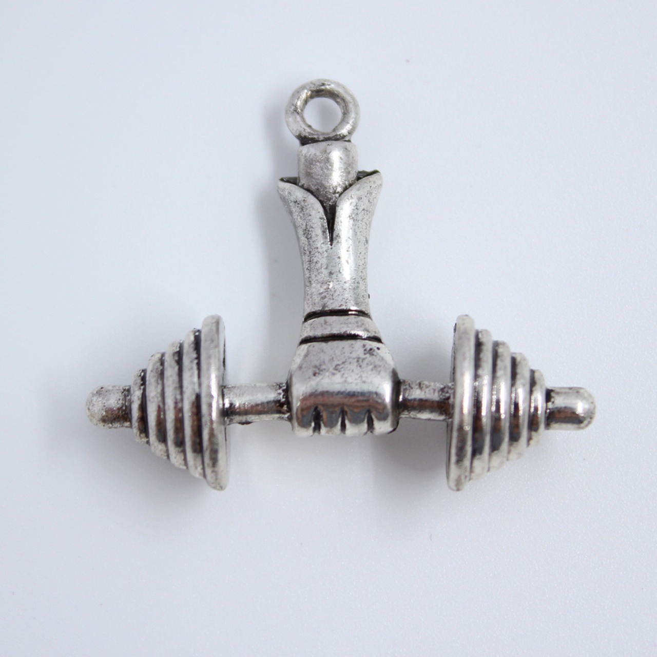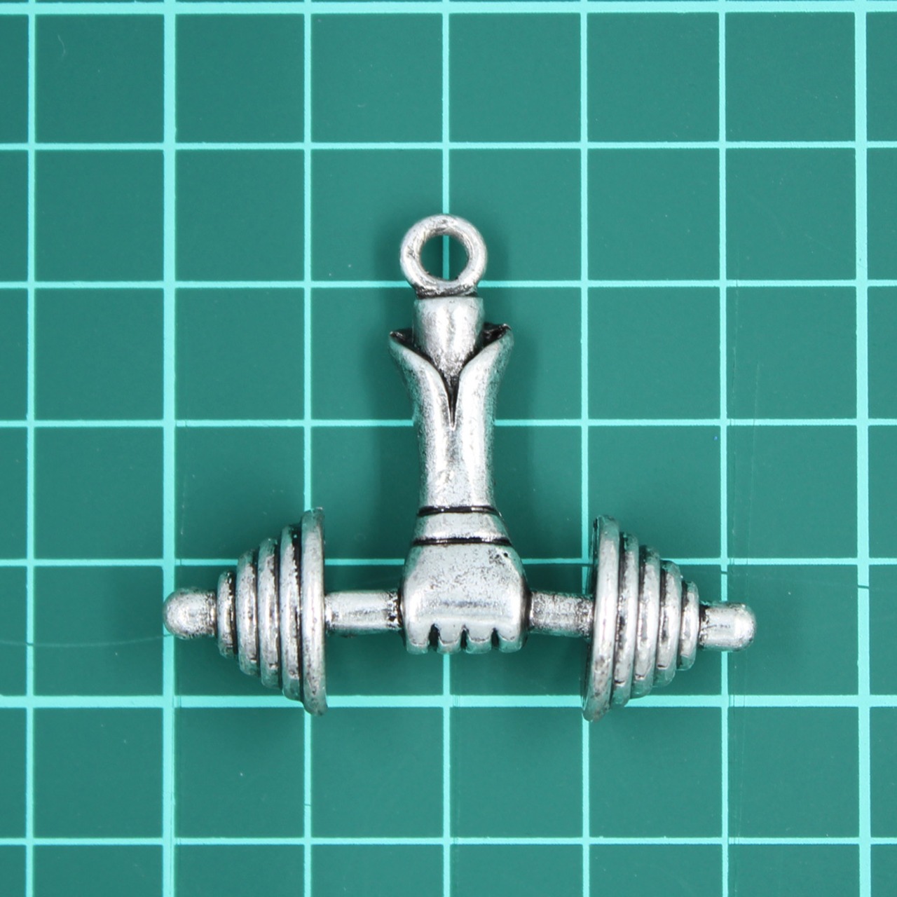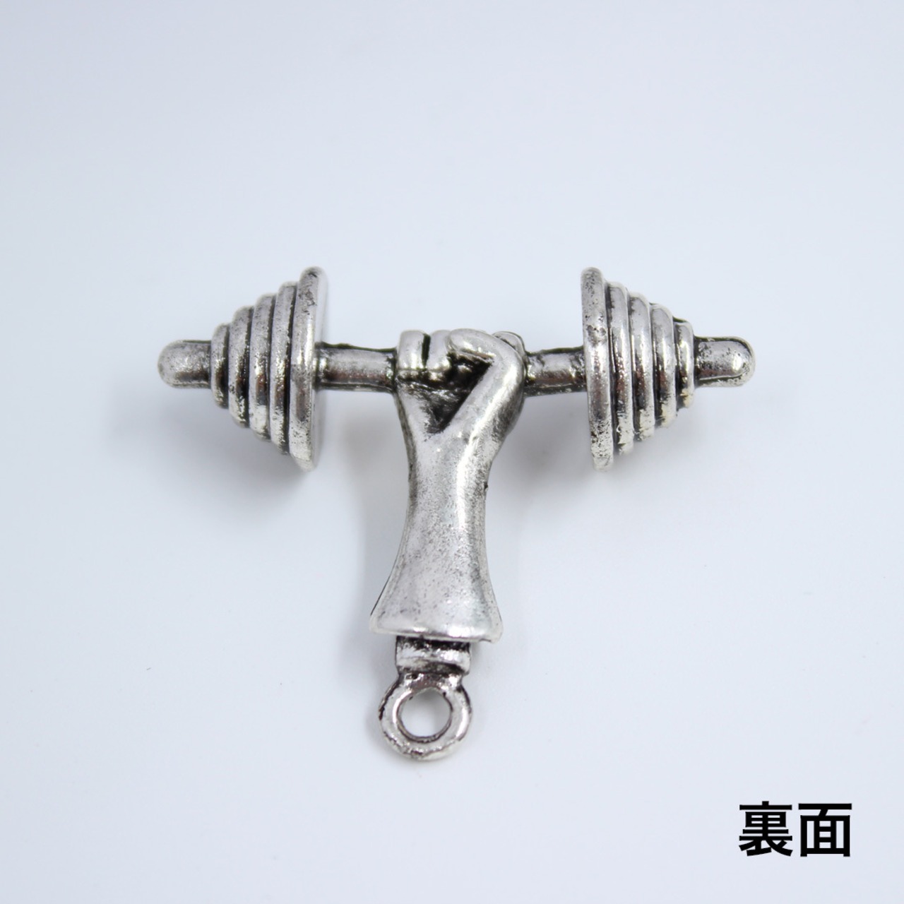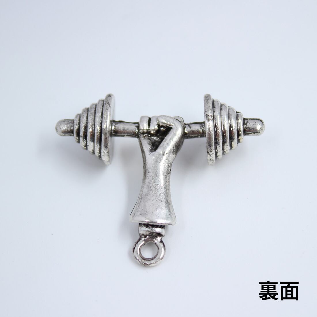 【1個】ダンベル&アーム チャーム [36.5mm×42mm] sgy-1875(アクセサリーチャーム パーツ ハンドメイド 材料 素材 金具 ダンベル アーム 手 アンティークシルバー 銀 シルバー )