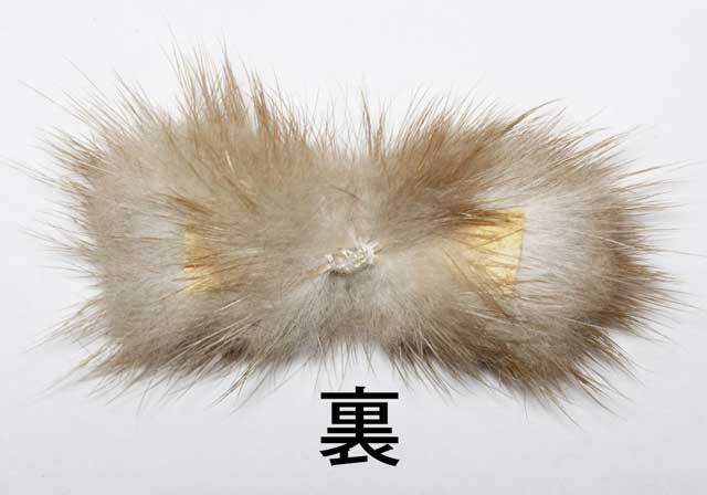 【1個】リボン型 ミンクファー [ベージュ色, 3cm×8cm] sgy-708b(ヘアアクセ パーツ カチューシャ バレッタ ヘアクリップ 資材 ハンドメイド ミンク ファー ふわふわ ベージュ リボン)