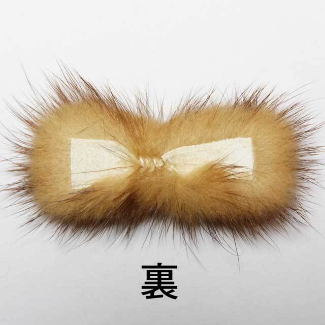 【1個】リボン型 ミンクファー [ブラウン色, 3cm×8cm] sgy-708e(ヘアアクセ パーツ カチューシャ バレッタ ヘアクリップ 資材 ハンドメイド ミンク ファー ふわふわ ブラウン 茶色 リボン)