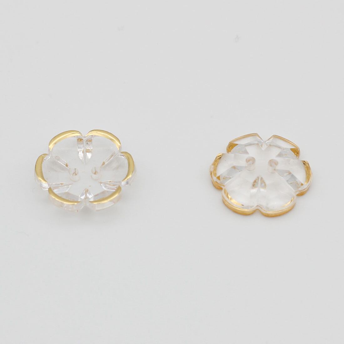 【10個パック】アクリル ボタン【クリア 金淵, フラワー , 直径20.7mm】sgy-856-10p(アクリル釦 アクリルボタン 透明 ボタン 釦 ぼたん 樹脂 手芸 材料 パーツ ハンドメイド 素材 プラスチック)