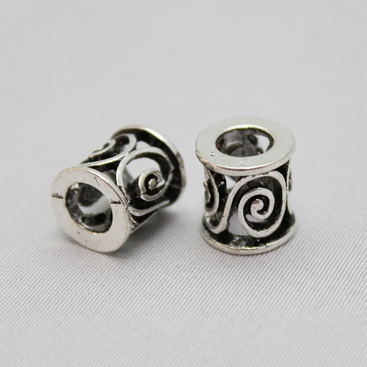 【2個パック】くり貫き 渦巻き模様 銀古美 スペーサー [外径約9mm×内径約4.5mm×厚み約9mm] sgy-896-2p(アクセサリー パーツ ネックレス リング型 円柱 副資材 材料 アンティークシルバー 銀色 シルバー うずまき)