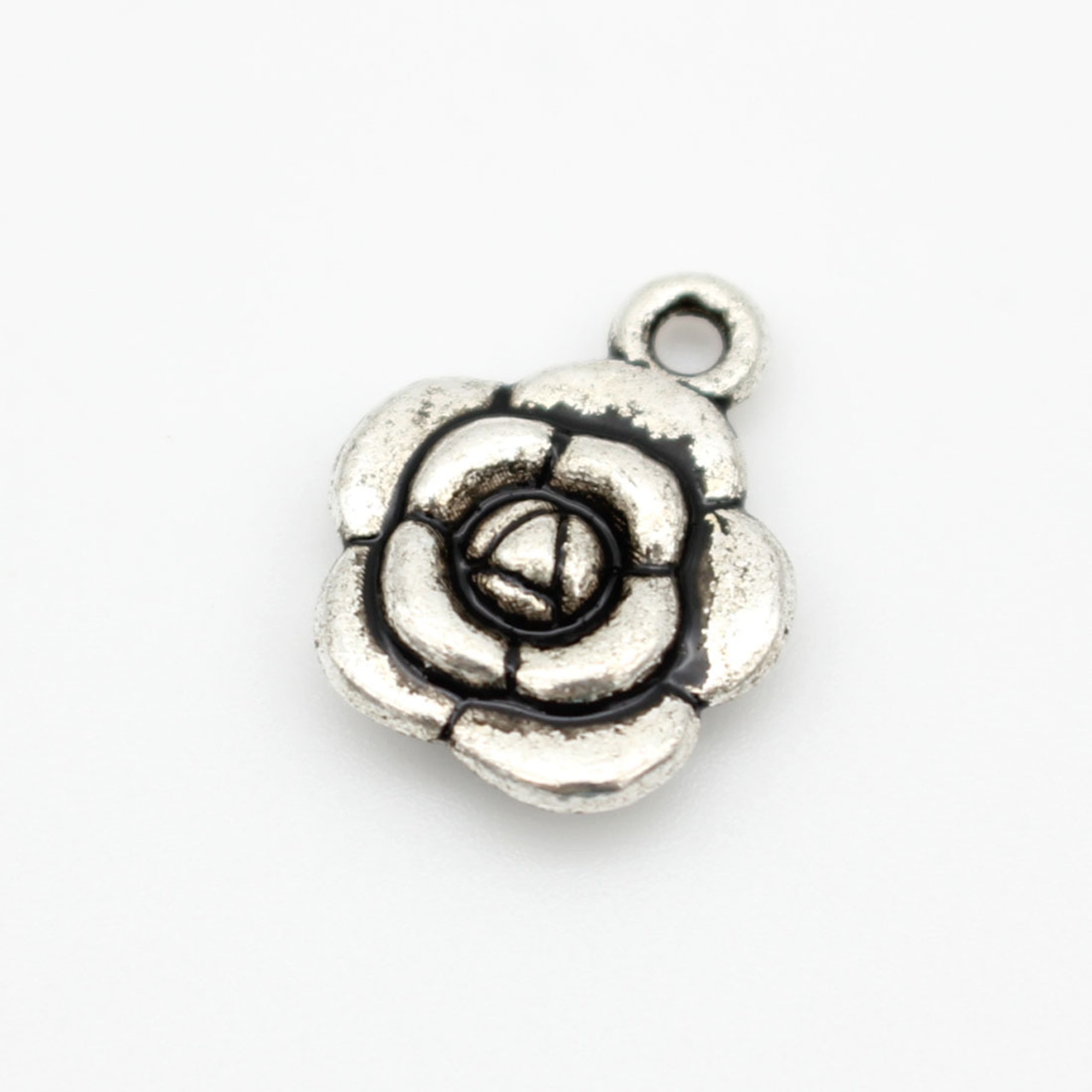 【3個パック】銀古美 チャーム【薔薇 ローズ】[縦約16.2mm×横約12.8mm×厚み約4.0mm、カン穴直径約2.0mm] sgy-914-b-3p(アクセサリー ペンダントヘッド パーツ ハンドメイド 材料 素材 金具 ばら バラ 花 フラワー アンティークシルバー 銀 シルバー 銅)