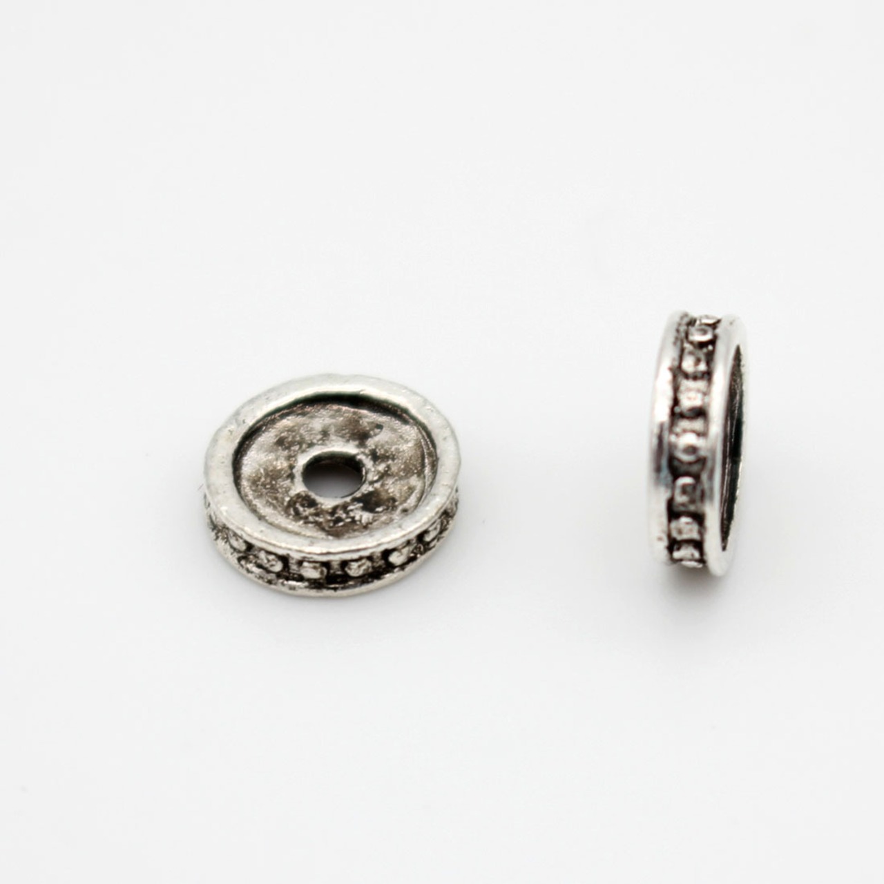 【10個パック】銀古美 スペーサー (円盤) [外径約8.6mm×厚み約2.4mm、穴直径約2mm] sgy-915-a-10p(ラウンド サークル 円 円形 ネックレス ブレスレット 装飾 アクセサリー パーツ ハンドメイド 材料 資材 金具 アンティークシルバー 銀 シルバー 銅)
