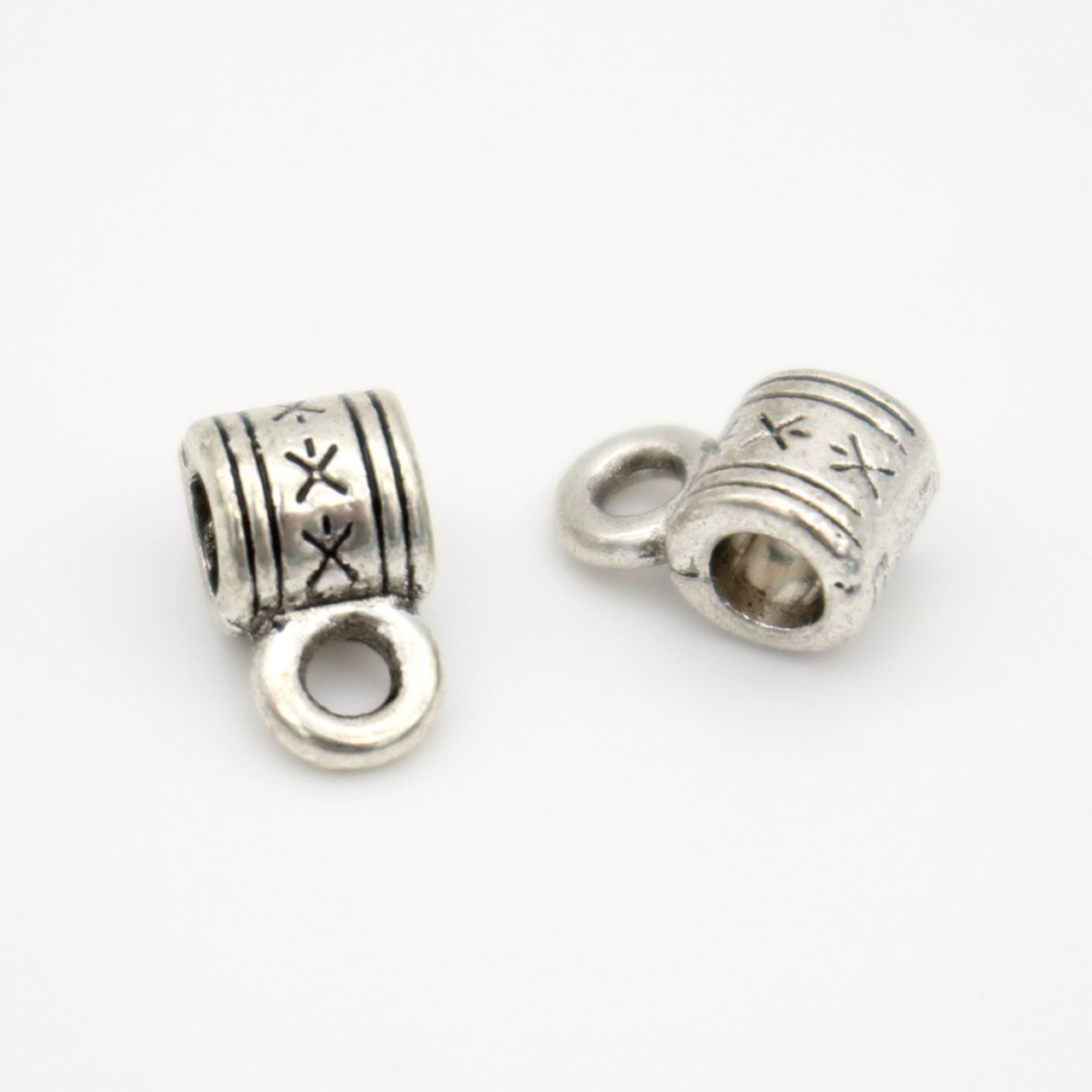 【20個パック】カン付き 銀古美 円柱型 スペーサー [約横5mm×縦8.8mm×筒外径4.9mm、穴径約2.5mm] sgy-916-c-20p(アクセサリーパーツ ネックレス ブレスレット パーツ ハンドメイド アンティークシルバー 銀 シルバー 装飾 筒 パイプ カン 銅)
