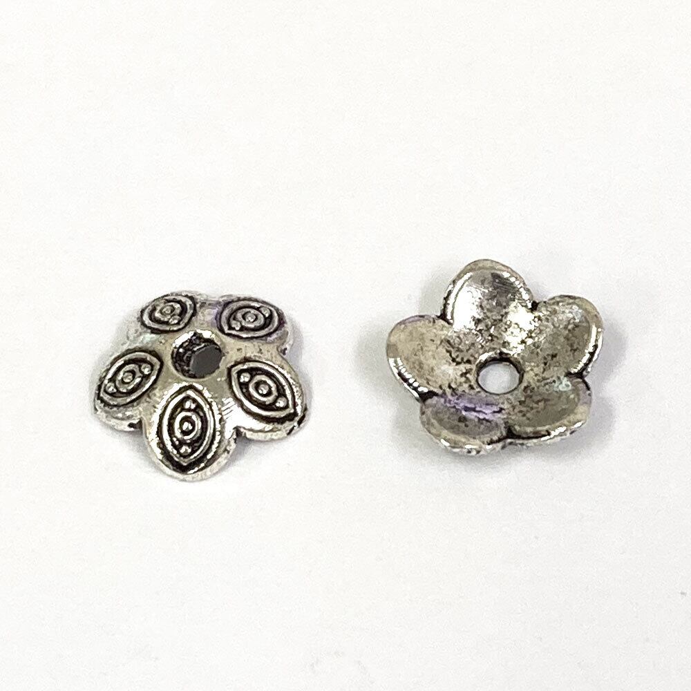 【20個パック】銀古美 座金 [花座 スペーサー] [縦約9.6mm×横約9.6mm×高さ約2.7mm、穴直径約1.5mm] sgy-922-d-20p(アクセサリーパーツ ネックレス パーツ ハンドメイド 材料 素材 金具 花 フラワー アンティークシルバー 銀色 銀 シルバー 装飾 銅)