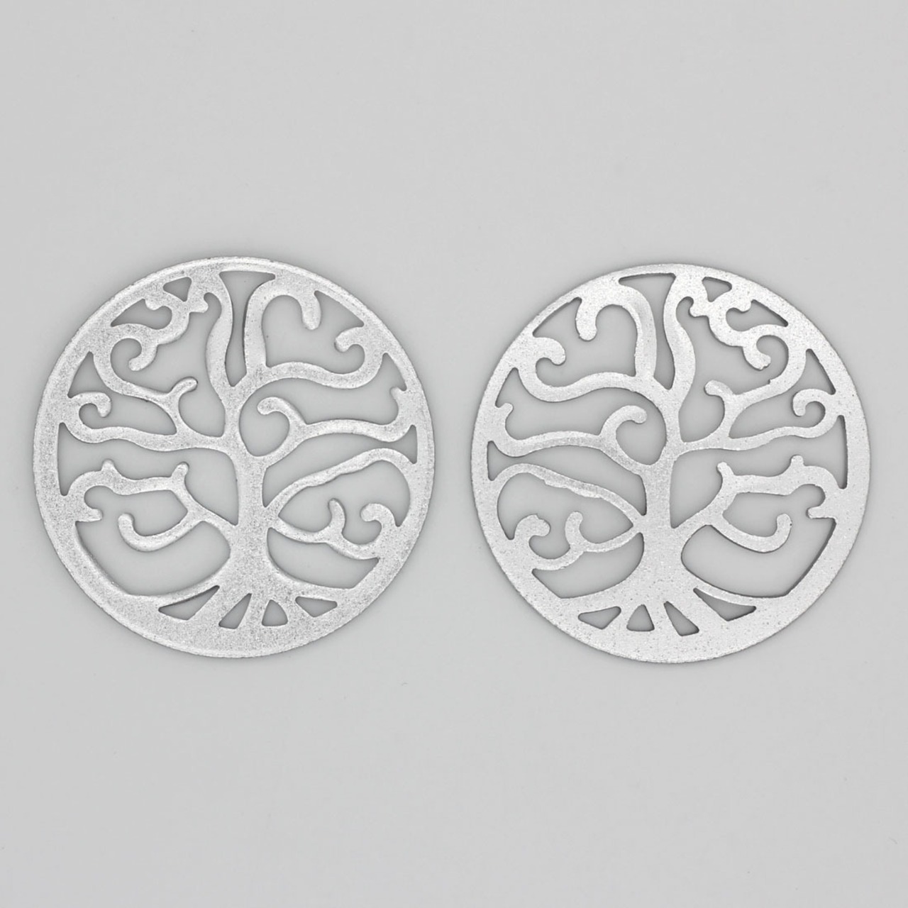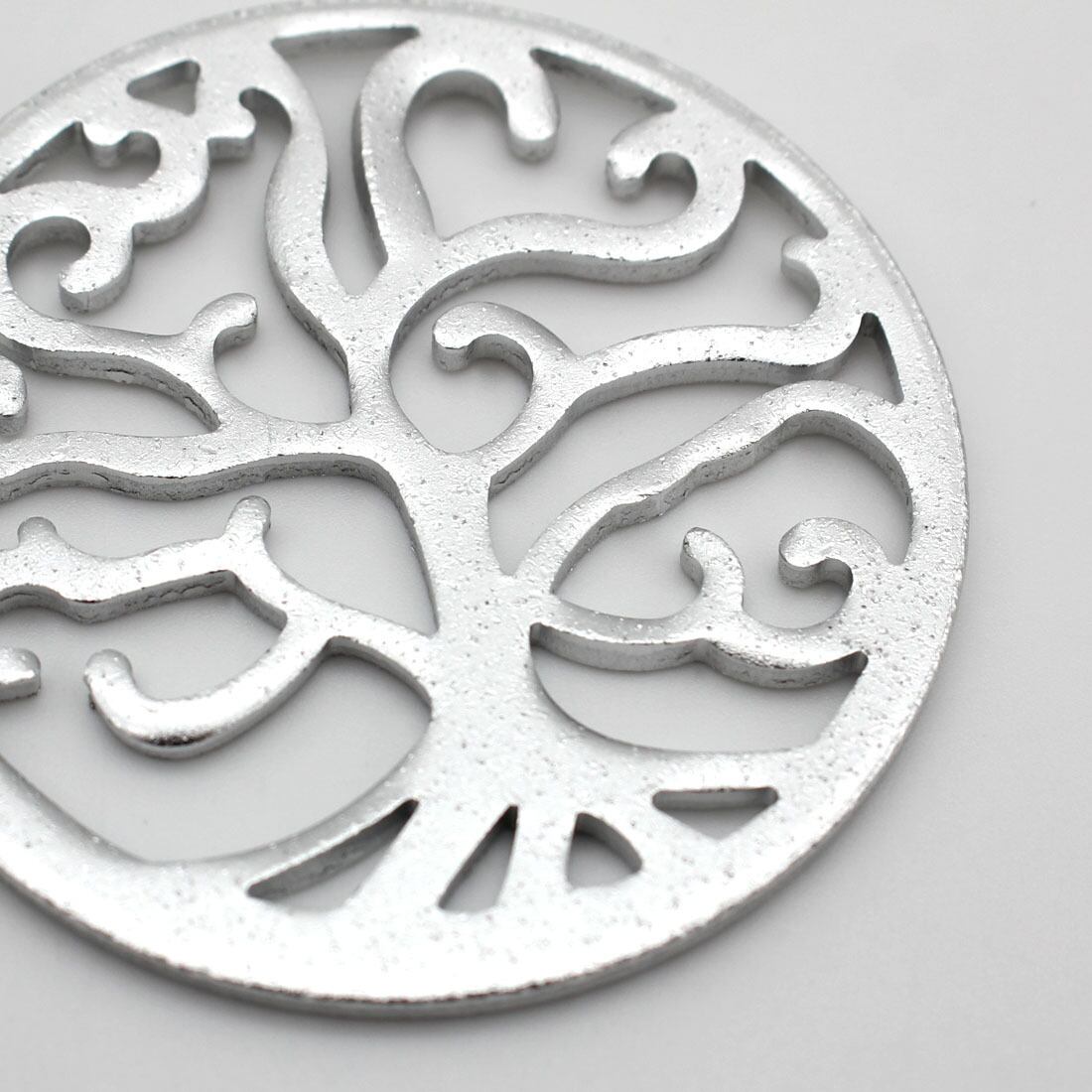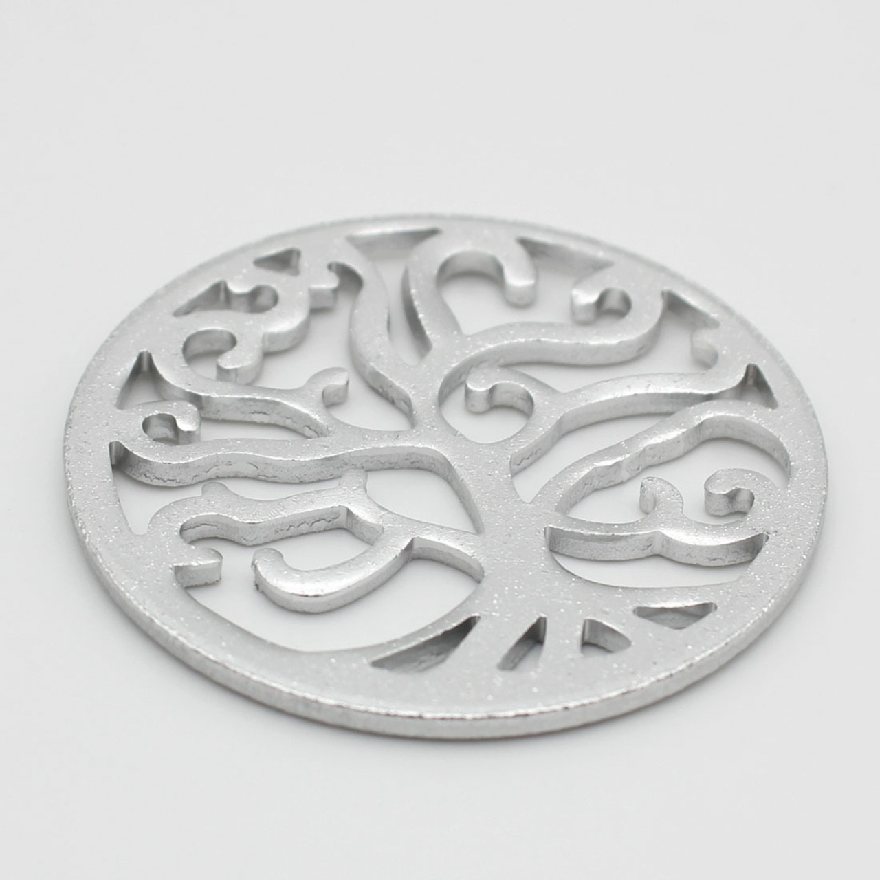 【1個】ペンダントトップ【 木 (ツリー)】【銅製】【シルバー 色、直径約5.5cm × 厚み約2.3mm】sgy-1760-b(銀色 チャーム アクセサリーチャーム パーツ ハンドメイド ネックレス 円形 ラウンド サークル)