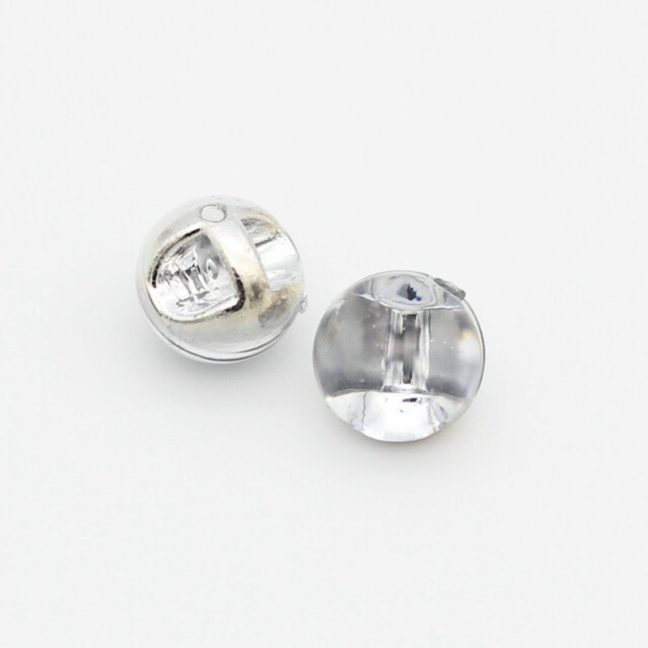 【10個パック】アクリルビーズ【上部クリア色&下部シルバー色, 穴あき , 直径11mm】sgy-860-10p(アクリル ビーズ クリア シルバー 透明 銀色 樹脂 手芸 材料 パーツ ハンドメイド プラスチック 丸型 ボール 球)