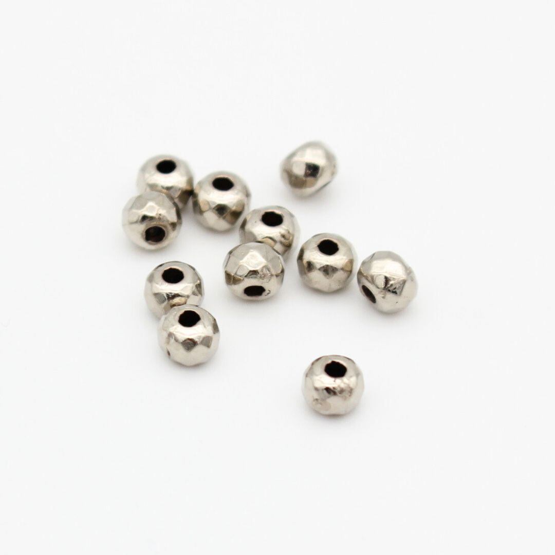 【100個パック】小さい アクリルビーズ【多面体 シルバー色, 穴あき , 横4.2mm, 厚み3.3mm】sgy-865-100p(mini ミニ 小サイズ アクリル ビーズ シルバー 銀色 樹脂 手芸 材料 パーツ ハンドメイド プラスチック ドーナツ型 円盤 多面)