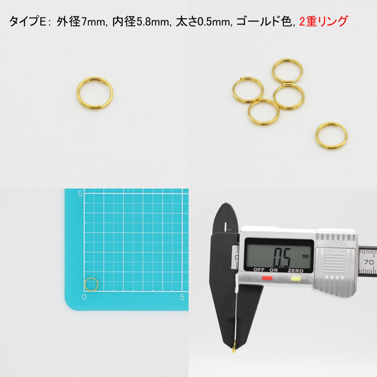 タイプE:外径約7mm, 内径約5.8mm, 太さ約0.5mm / ゴールド / 2重